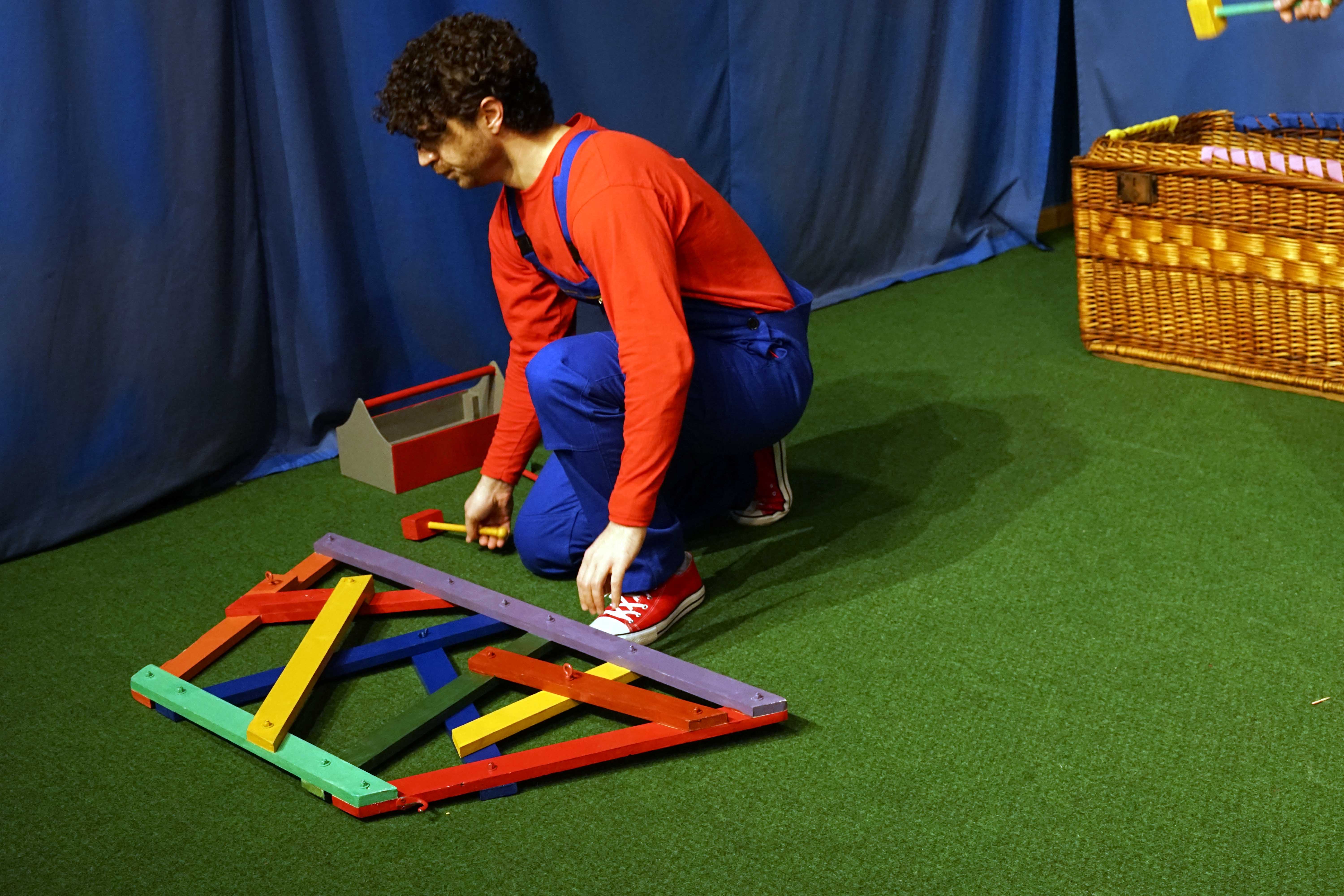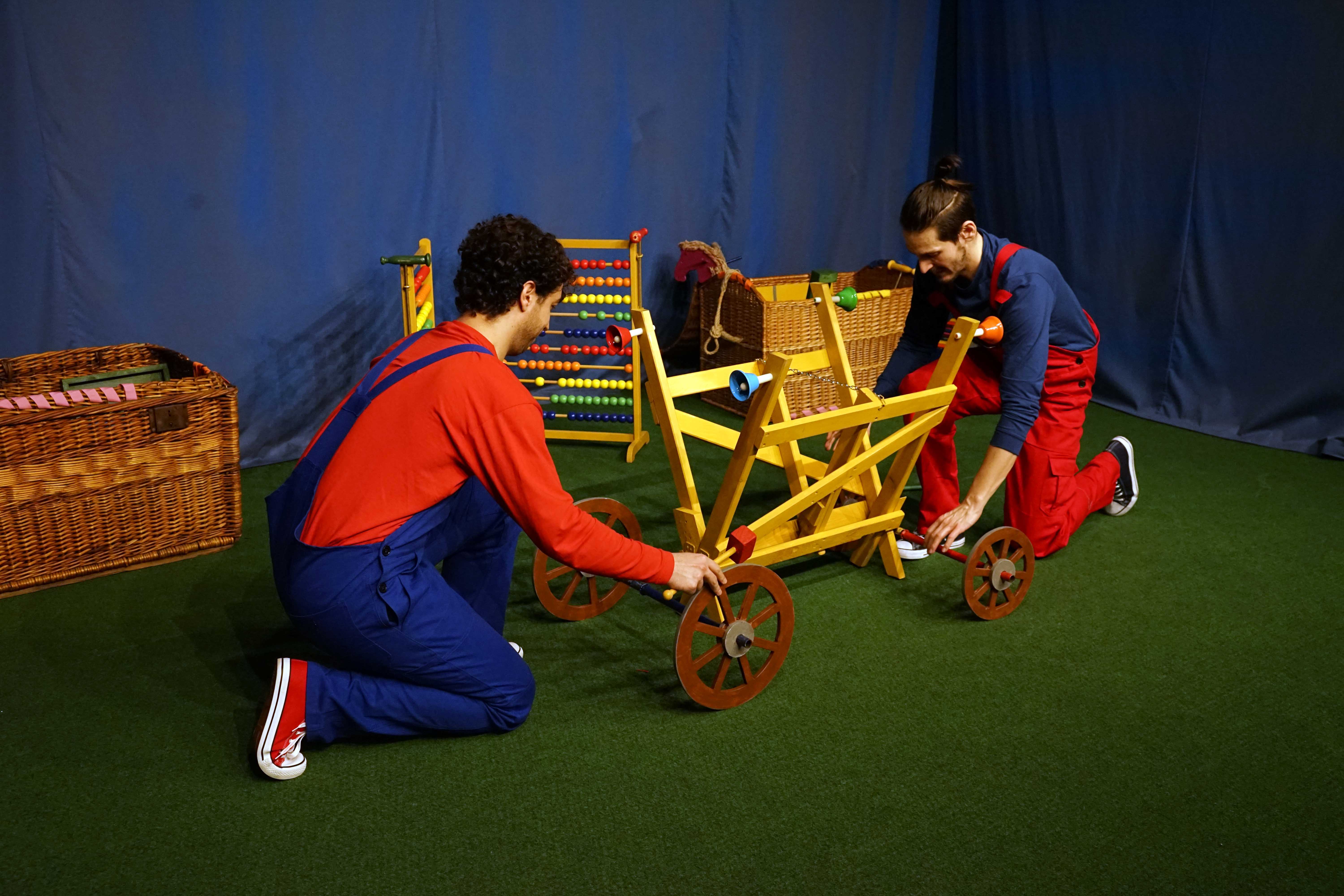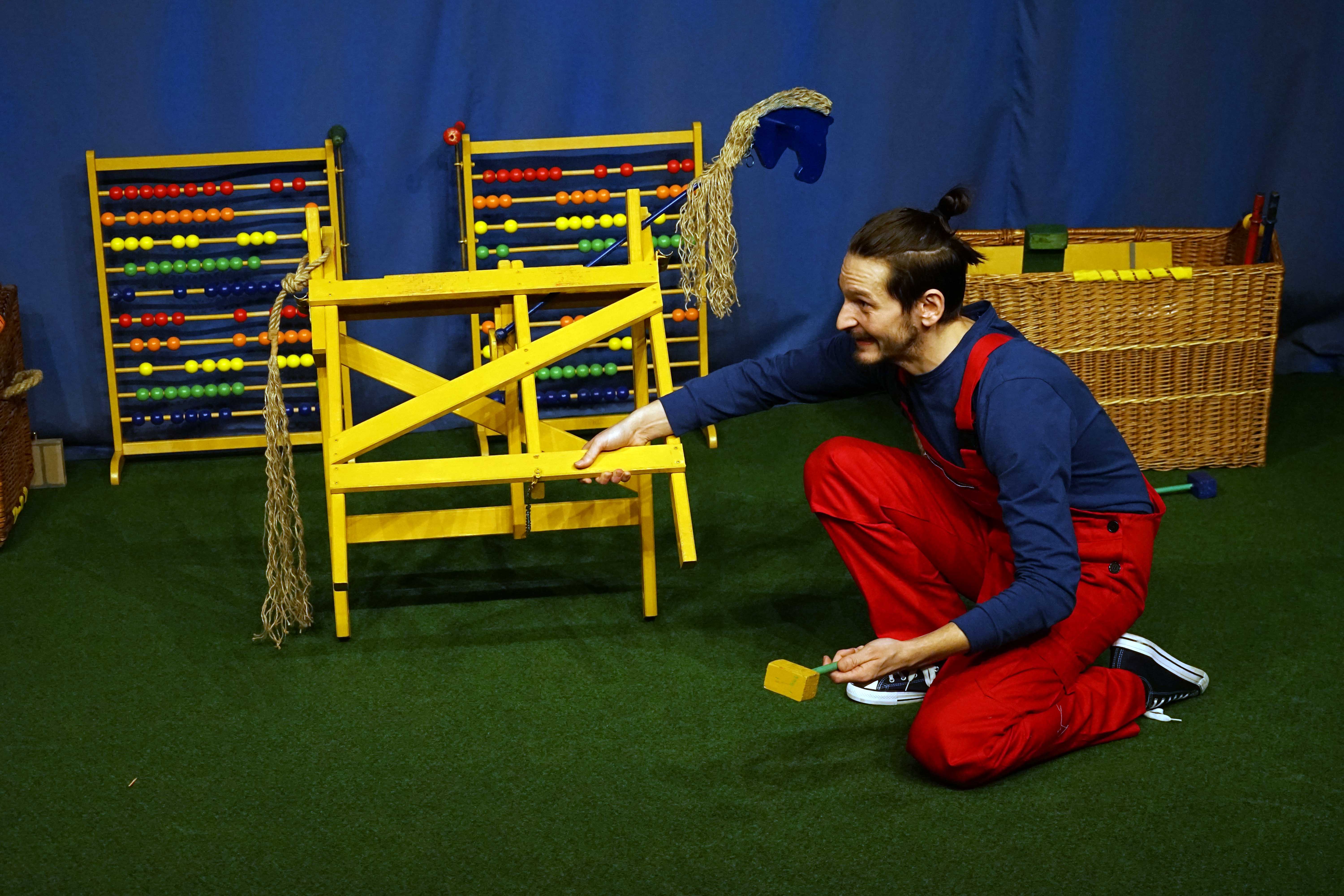 A Vaskakas Bábszínház legújabb apróknak szóló (0-4 év) előadásában ritmusra kopogva épül szekér, faház, tűzhely, s még egy lovacskát is megpatkolnak.